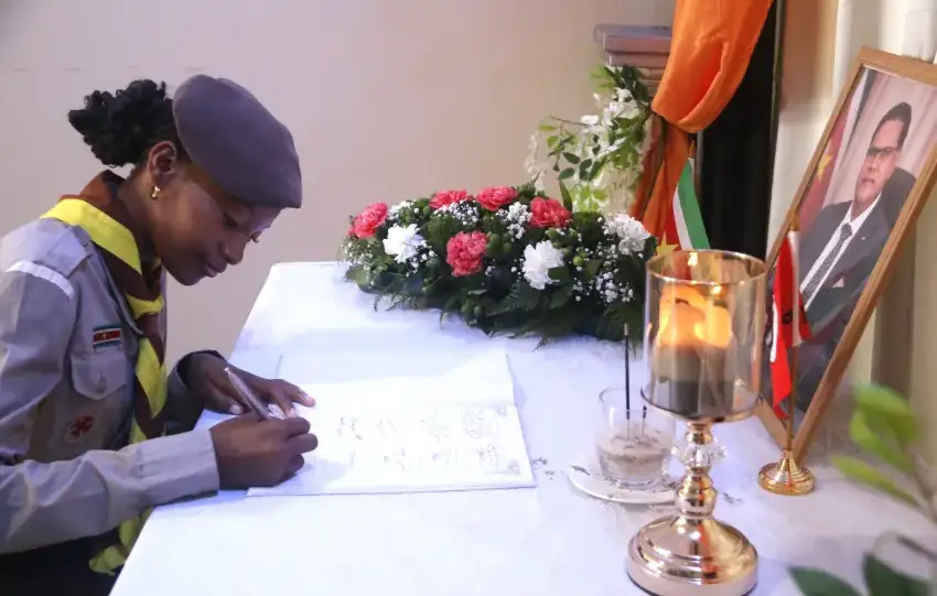 Een zeventienkoppige groep van de Boy Scouts Suriname en Surinaamse Padvindsters Raad heeft zaterdag het condoleanceregister getekend voor oud-president en VHP-voorzitter Chandrikapersad Santokhi. Het gebeurde in het partijcentrum De Olifant. Zo brachten de scouts hun respect over voor de overleden oud-president, die ook chief scout was.
